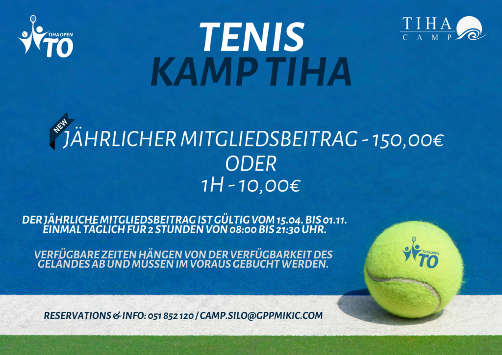 Für Unterhaltung und Erholung während Ihres Urlaubs sorgt der Tennisplatz im Camp selbst.