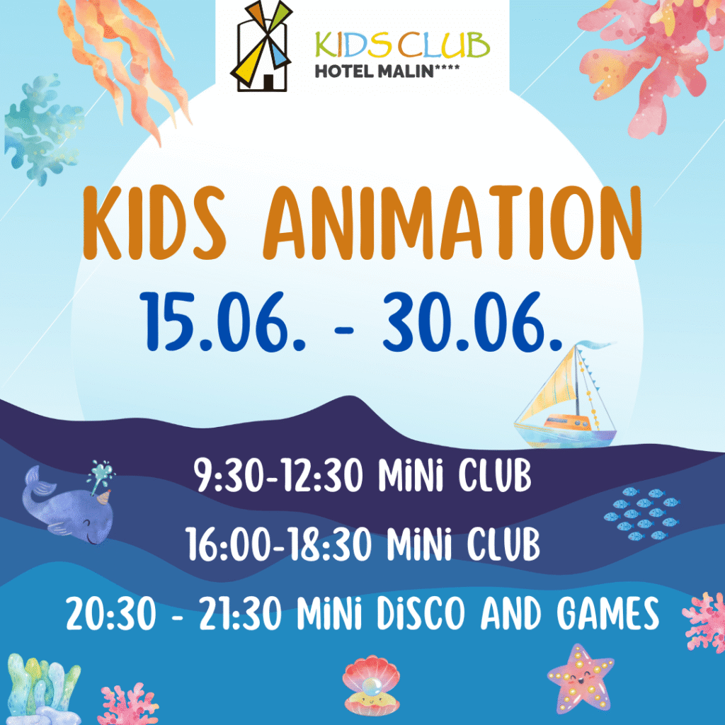 The Kids Club entertainment team will make sure that the youngest members of your family also have an unforgettable stay in the Hotel Malin.