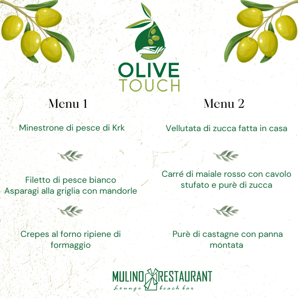 Il ristorante in stile tipico Mulino è una fusione perfetta di lusso, tradizione e alta qualità. Oltre che della posizione lungo il mare e della vista su tutto il Quarnero, siamo particolarmente orgogliosi della nostra offerta di piatti locali e prelibatezze dell’isola. La creatività dei nostri ambiziosi chef, la preparazione di piatti originali a base di pesce e frutti di mare, l’olio d’oliva di Veglia di qualità, la pasta fatta in casa, le šurlice, i cibi cotti sotto la campana, l’agnello di Veglia, il formaggio pecorino e il prosciutto crudo sono solo una piccola parte della nostra ricca offerta. Non mancate di visitarci per sperimentare un piacere gastronomico tradizionale in un modo moderno. Subito dopo l’arrivo, brindate con un bicchiere di Vrbnička žlahtina “d’oro” della “casa” Mulino.