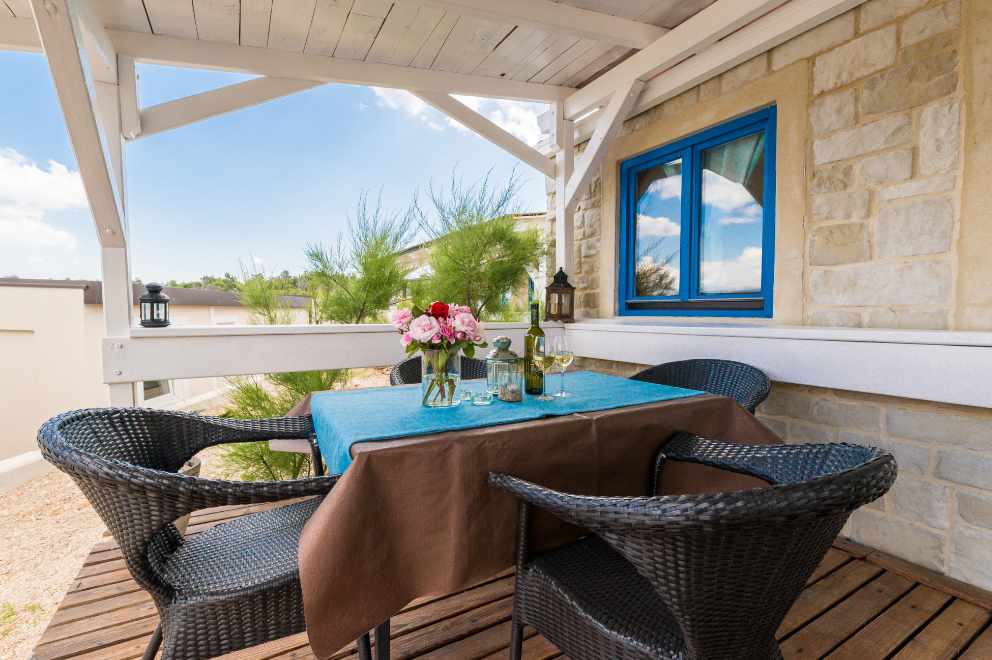 Superficie: 22 m² (7,3 m × 3 m). Arredata in stile mediterraneo e rivestita con pietra decorativa, ricorda una piccola casa in pietra tipica dell’isola di Krk.