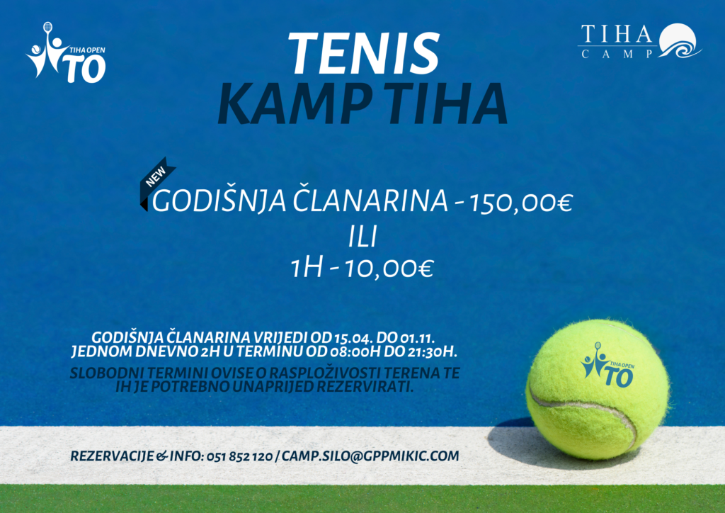 Teniski teren smješten u samom kampu omogućiti će vam zabavu i rekreaciju za vrijeme odmora.