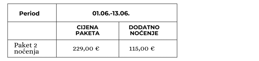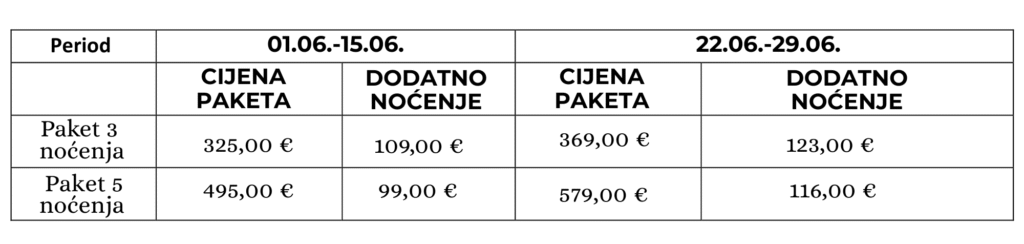 Ponuda vrijedi u terminu: 01.06.-15.06. & 22.06.-29.06.2025.